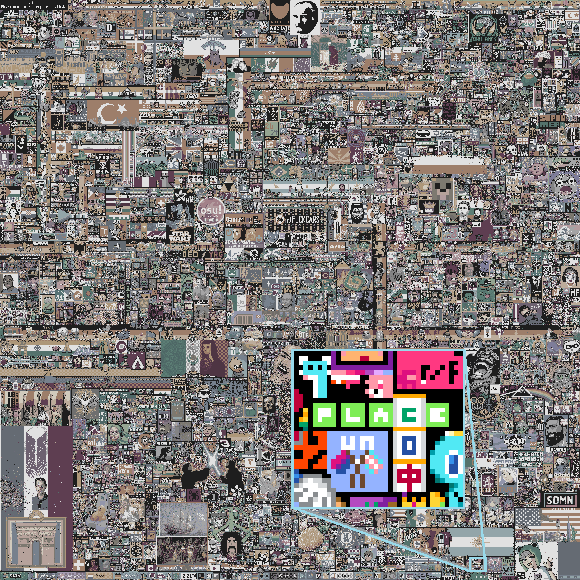 Every inch of the canvas is fiercly guarded and hotly contested by large, active online communities, so it was no easy feat, and took several false starts and amended plans, but ultimately, we did it!